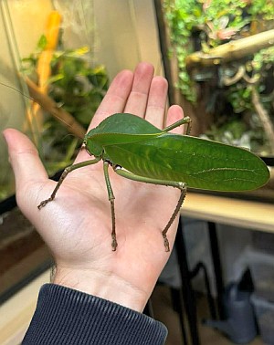 Camouflage:Met hun heldergroene kleur en vleugels die precies op bladeren lijken, zijn ze nagenoeg onzichtbaar tussen het loof.